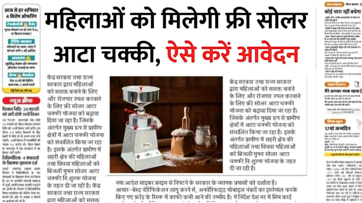 Solar Atta Chakki Yojana: सरकार दे रही महिलाओं को मुफ्त सोलर आटा चक्की, जानें आवेदन का आसान तरीका